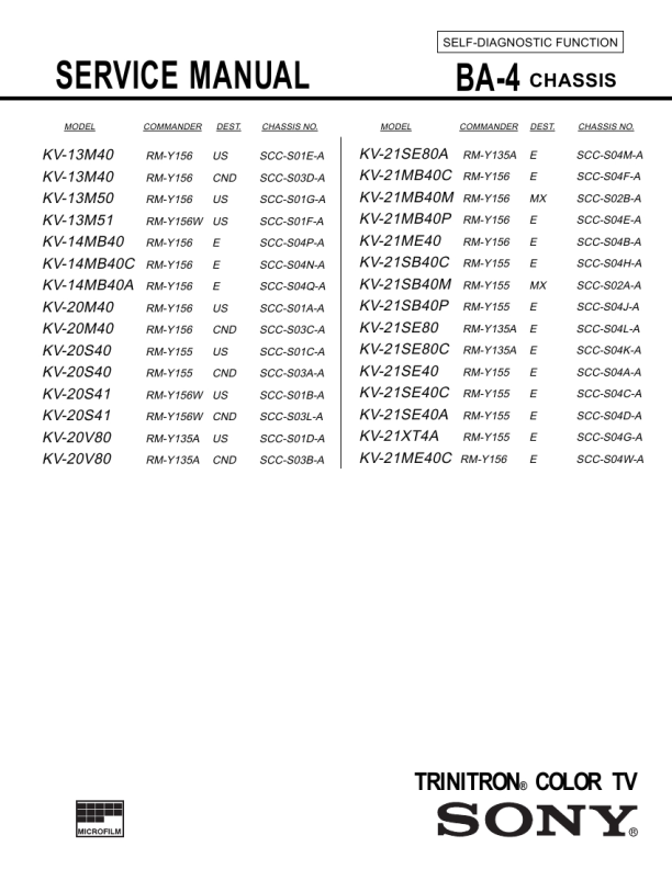 KV-[13M40/50/51], KV-[14MB40/40C/40A], KV-[20M40/S40/S41/V80], KV-[21SE40/40A/40C/80/80A/80C], KV-[21MB40C/40M/40P], KV-[21ME40/40P], KV-[21SB40/40M/40P], KV-21XT4A