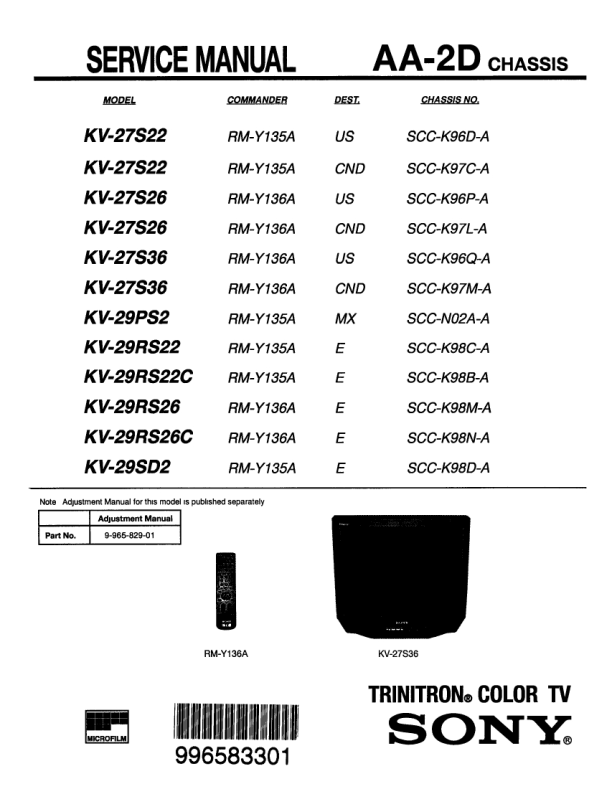 Opis SONY KV27S22 Instrukcja Serwisowa