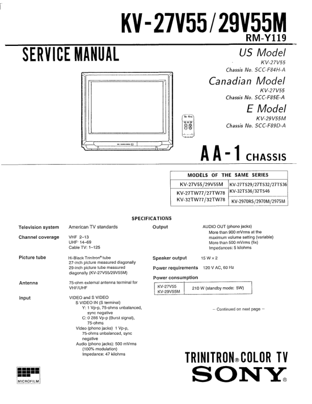 Strona główna >> SONY >> KV27V55M Instrukcja Serwisowa