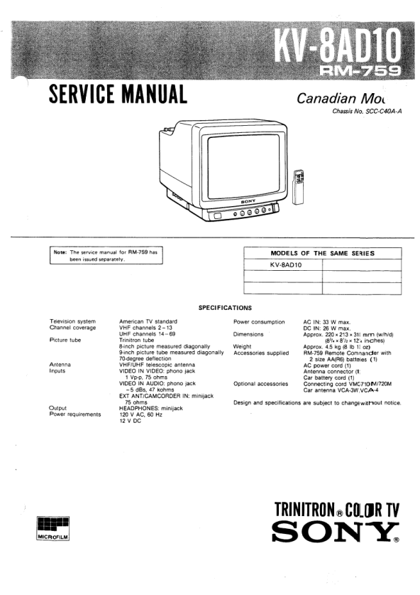 Opis SONY KV8AD10 Instrukcja Serwisowa