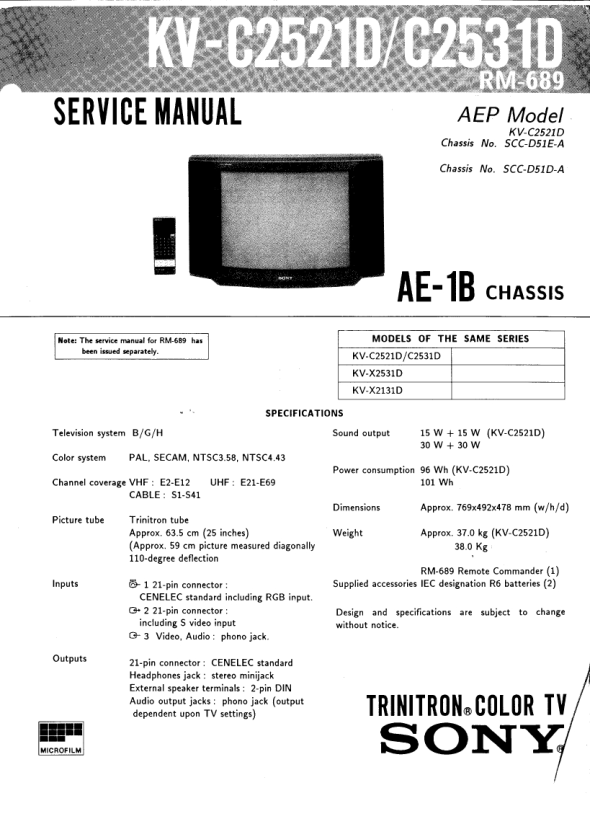 Opis SONY KVC2531D Instrukcja Serwisowa