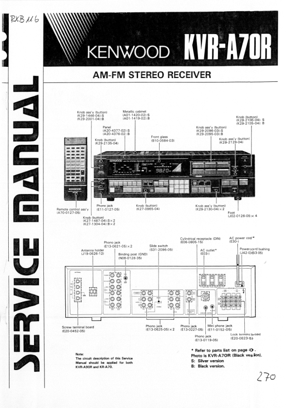 Opis KENWOOD KVR-A70R Instrukcja Serwisowa
