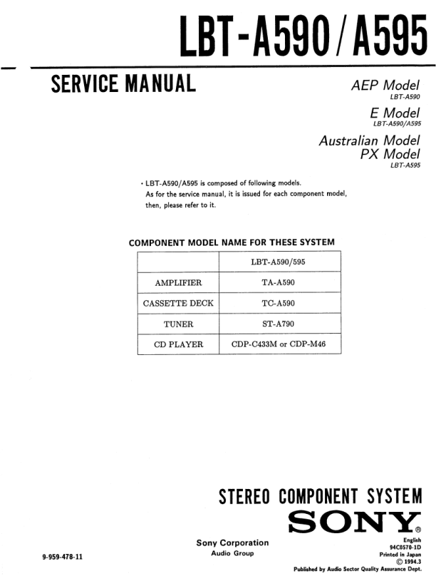 Opis SONY LBTA590 Instrukcja Serwisowa