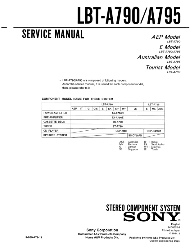 Opis SONY LBT-A790 Instrukcja Serwisowa