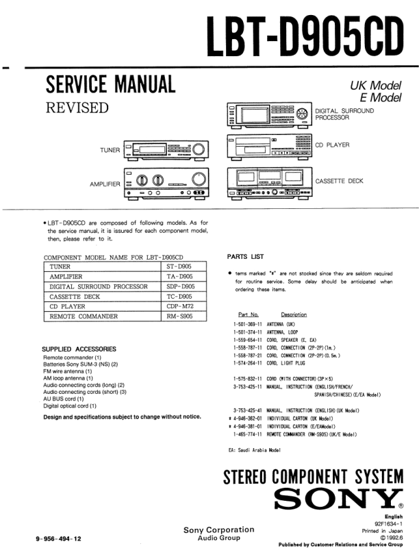 Strona główna >> SONY >> LBTD905CD Instrukcja Serwisowa