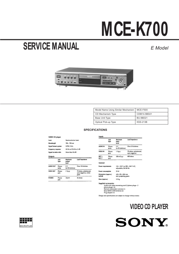 1. CD Block is basically designed to operate without adjustment. Therefore, check each item in order given. 2. Use YEDS-18 disc (3-702-101-01) unless otherwise indicated. 3. Use an oscilloscope with more than 10M� impedance. 4. Clean the object lens by an applicator with neutral detergent when the signal level is low than specified value with the following checks. S Curve Check