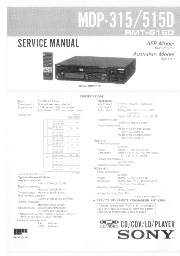- MP - 15, TL - 40 (Video) and RG - 6 (MDP - 515D) Boards