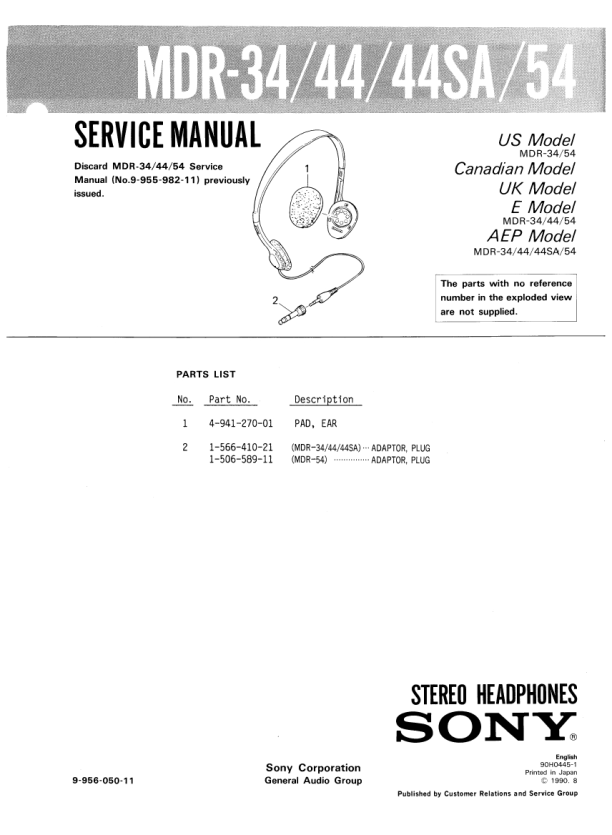 Opis SONY MDR44SA Instrukcja Serwisowa
