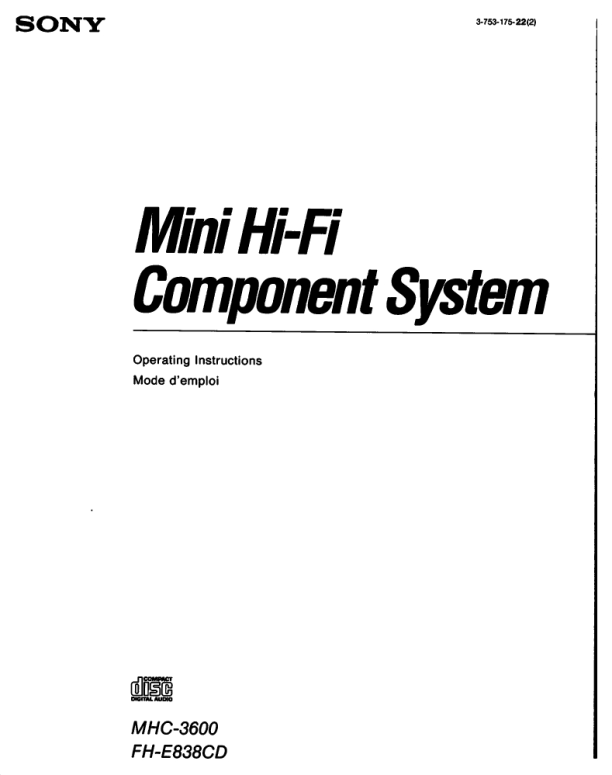 Opis SONY MHC-3600 Instrukcja Obsługi