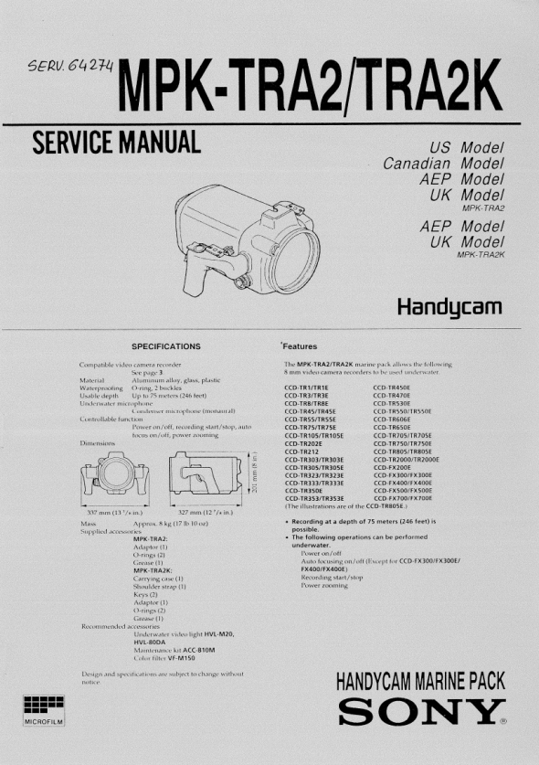 Opis SONY MPK-TRA2K Instrukcja Serwisowa