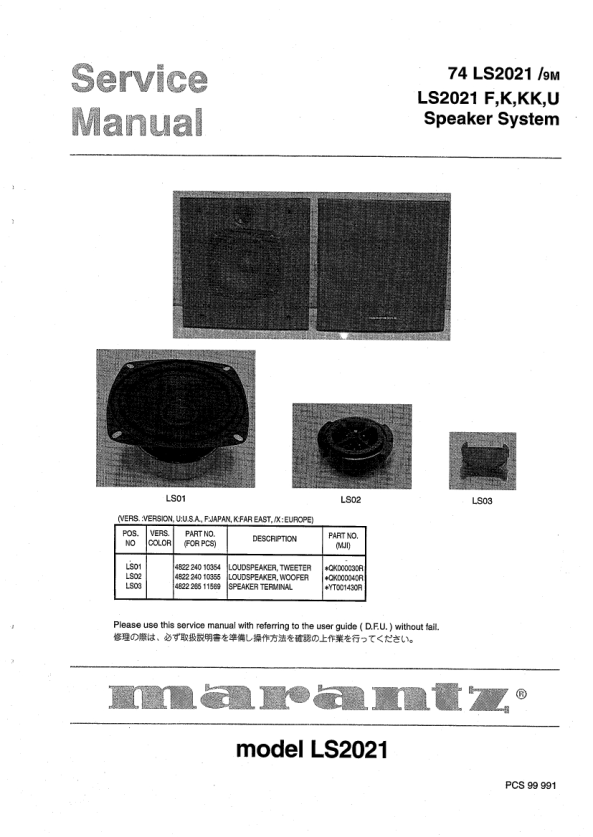 Strona główna >> MARANTZ >> MR2021 Instrukcja Serwisowa