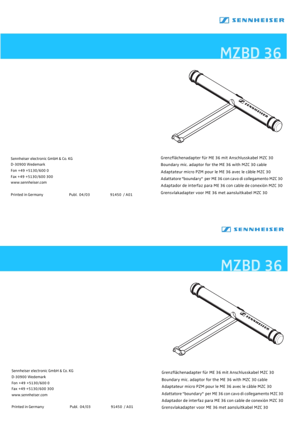 Sennheiser electronic GmbH & Co. KG D-30900 Wedemark Fon +49 +5130/600 0 Fax +49 +5130/600 300 www.sennheiser.com Printed in Germany Publ. 04/03 91450 / A01