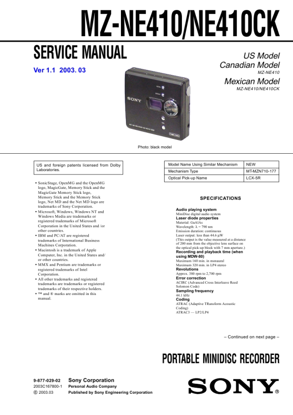 Mode to adjust or check the operation of the set by function. Normally, the adjustment in this mode is not executed. However, the Manual mode is used to clear the memory, power supply adjustment, and laser power check before performing automatic adjustments in the Overall Adjustment mode. � Transition Method in Manual Mode 1. Set the test mode (see page 13). 2. Press the > to activate the manual mode where the LCD display as shown below.