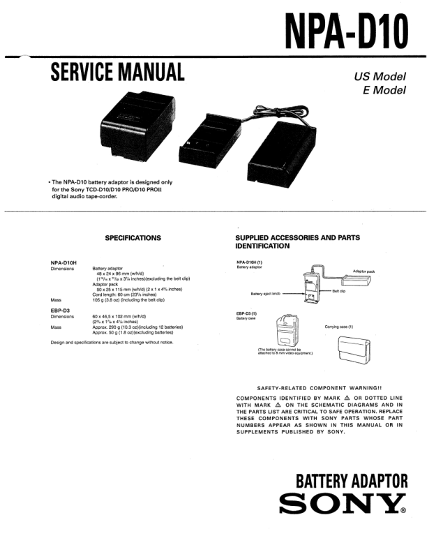 Opis SONY NPA-D10 Instrukcja Serwisowa
