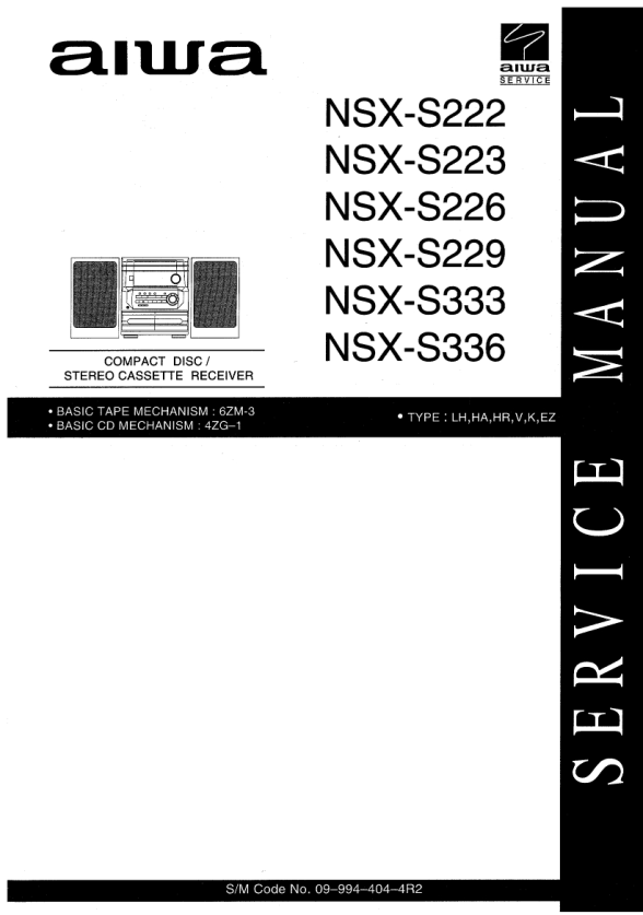 Opis AIWA NSXS226 Instrukcja Serwisowa
