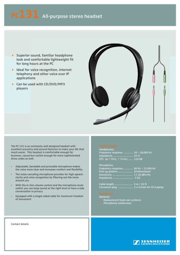 Opis SENNHEISER PC 131 Instrukcja Obsługi