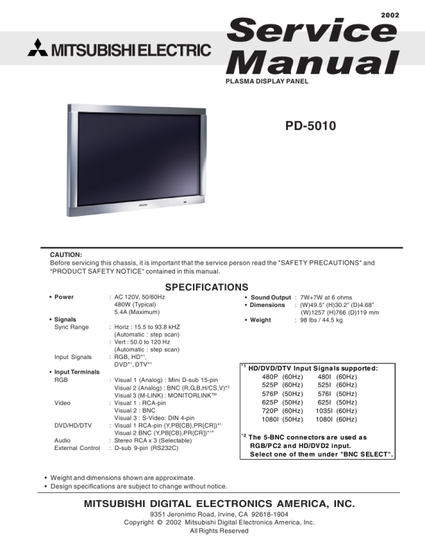b. Certains châssis de moniteur ont habituellement 85V (RMS) entre le châssis et la prise de terre, en fonction de la polarité de la prise de courant. Ces châssis peuvent ne comporter aucun risque seulement avec un transformateur d'isolation inséré dans la ligne de puissance située entre de rétro-projecteur et la source d'électricité, cela pour la protection aussi bien du personnel que du matériel de vérfication. c. Certains châssis de rétro-projecteur ont un système secondaire de masse en addition avec le système principal de masse du châssis. Ce système secondaire de masse n'est pas isolé du courant électrique. Les deux systèmes sont électriquement séparés par du matériel d'isolation qu' on vérifiera bien qu'il ne soit ni altéré ni défectueux. 5. Vérifier la couverture originale en plomb. Accorder la plus grande attention à la couverture de plomb notamment aux endroits ci-dessous indiqués. a. Près des bords aigus b. près des parties très chaudes Vérifier que les composants et les plombs ne touchent pas les parties très chaudes telles que: c. l'alimentation du courant d. la haute tension e. Ies fils de l'antenne Pousser l'inspection, à tous les endroits, à la recherche des cordes pincées, déplacées ou effilochées. Ne pas changer l'écartement entre composants, et entre composants et le tableau de circuit imprimé. Vérifier que le fil de conduite électrique est en bon état. 6. Les composants, parts (pièces) et/ou fils qui ont été trouvés surchauffés devraient être remplacés avec les composants, pièces et fils s'y reliant avec d'autre qui ont les mêmes spécifications que les originales. De plus, rechercher la cause du surchauffement et/ ou des dommages et si nécessaire, prendre les mesures propres pour prévenir tout risque potentiel. 7. Note sur sûreté de l'appareil Beaucoup de pièce de rétro-projecteur, qu'elles soient électriques ou mécaniques, ont des dispositions de sécurité qui ne sont pas toujours évidentes d'une simple inspection visuelle et la protection qu'elles donnent nécessairement ne pourront être pas obtenues par les remplaçants avec des composants aux voltages ou watts plus élevés. Les pièces qui ont des caractéristiques particulières de sécurité sont identifiées avec un trait marqué sur les schémas et sont ombragés ou comportent un trait sur la liste des pièces. L'utilisation d'un produit substitutif qui n'aurait pas les mêmes caractéristiques comme il est recommandé dans ces données d'entretien pourrait provoquer une décharge électrique, un feu, et/ou d'autres dangers.