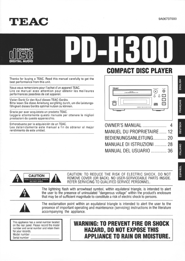 Opis TEAC PD-H300 Instrukcja Obsługi
