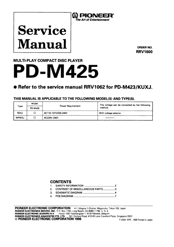 Strona główna >> PIONEER >> PDM425 Instrukcja Serwisowa