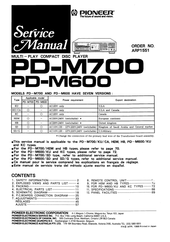 Strona główna >> PIONEER >> PD-M600 Instrukcja Serwisowa