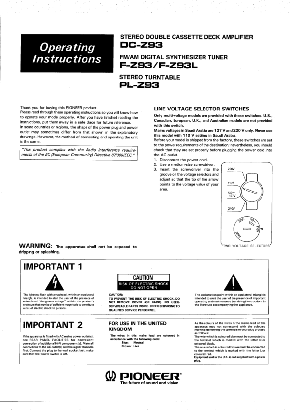 Opis PIONEER PLZ93 Instrukcja Obsługi