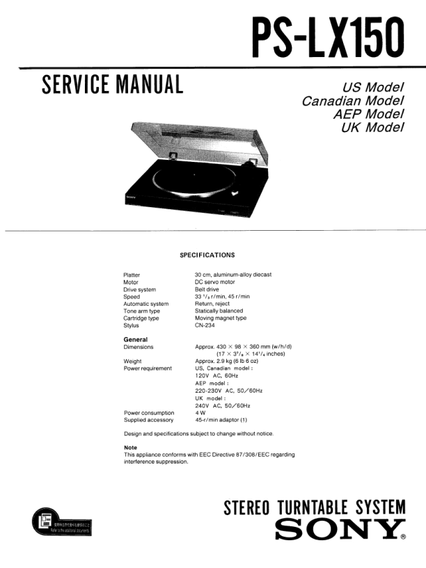 Opis SONY PS-LX150 Instrukcja Serwisowa