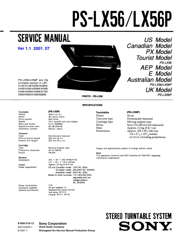 Clicking the version allows you to jump to the revised page. Also, clicking the version at the upper right on the revised page allows you to jump to the next revised page. Ver. 1.1 Date 2001.07 Description of Revision PDF registration (including : 9-959-216-81, 9-959-216-82, 9-959-216-83, 9-959-216-91) New