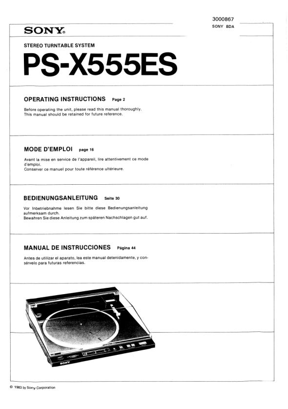 Opis SONY PS-X555ES Instrukcja Obsługi