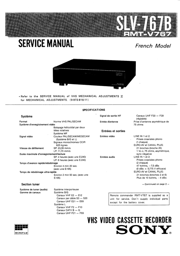 Opis SONY RMT-V767 Instrukcja Serwisowa