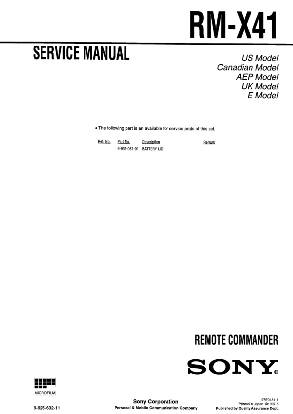 Strona główna >> SONY >> RMX41 Instrukcja Serwisowa