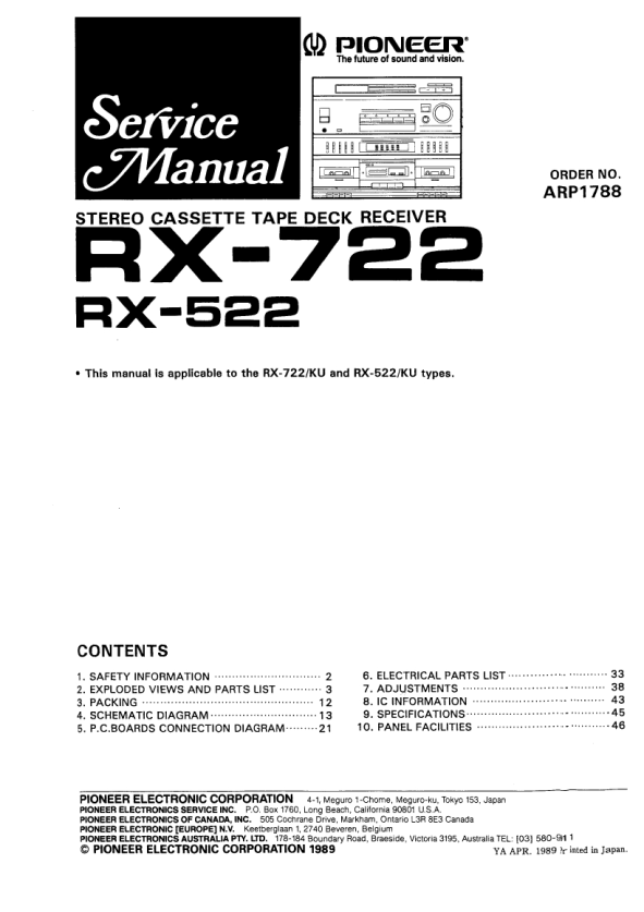 Opis PIONEER RX-722 Instrukcja Serwisowa