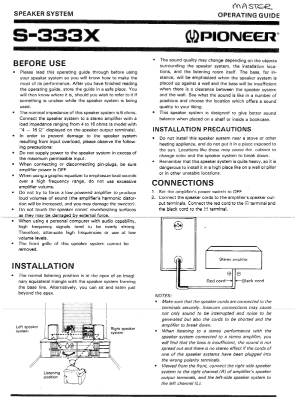 Strona główna >> PIONEER >> S333X Instrukcja Obsługi