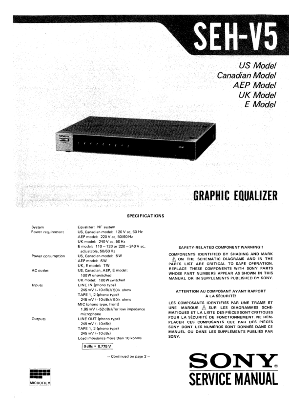 Opis SONY SEHV5 Instrukcja Serwisowa