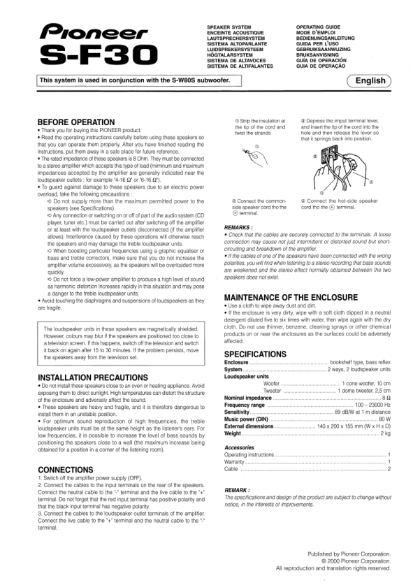 Strona główna >> PIONEER >> S-F30 Instrukcja Obsługi