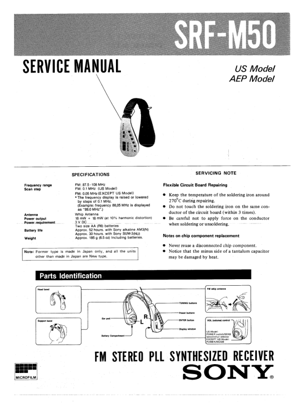 Opis SONY SFRM50 Instrukcja Serwisowa