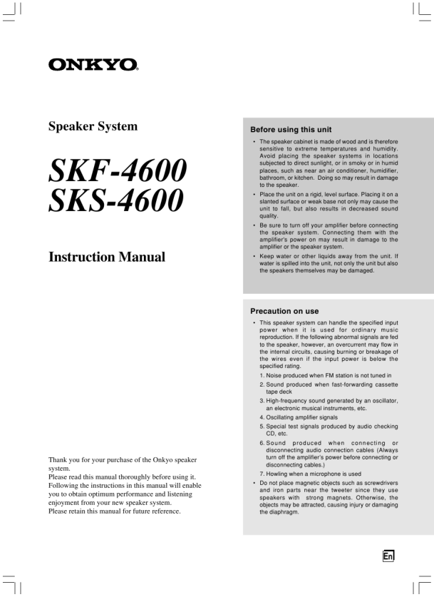 SKF-4600 Front right speaker SKF-4600 Front left speaker
