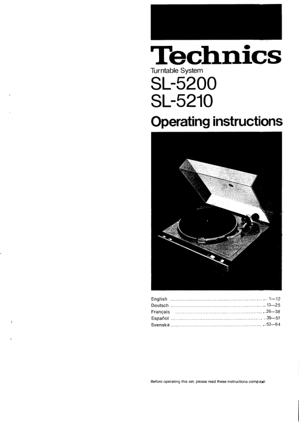 Opis TECHNICS SL-5210 Instrukcja Obsługi