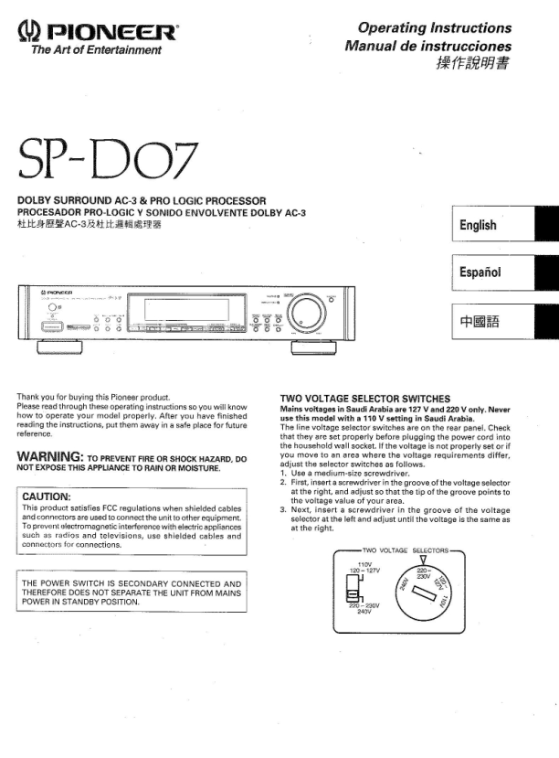 Strona główna >> PIONEER >> SPD07 Instrukcja Obsługi