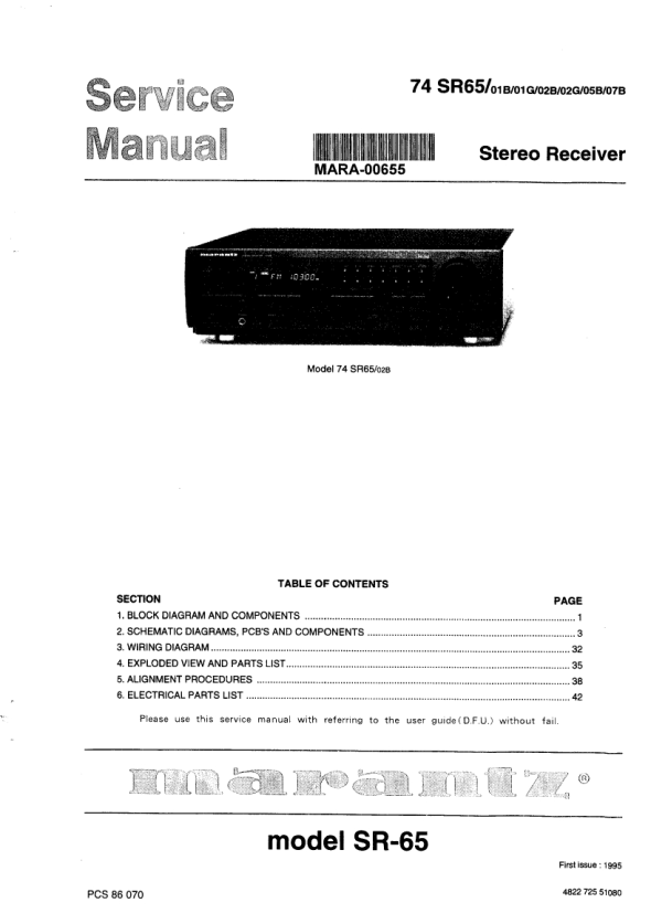 Opis MARANTZ SR65 Instrukcja Serwisowa
