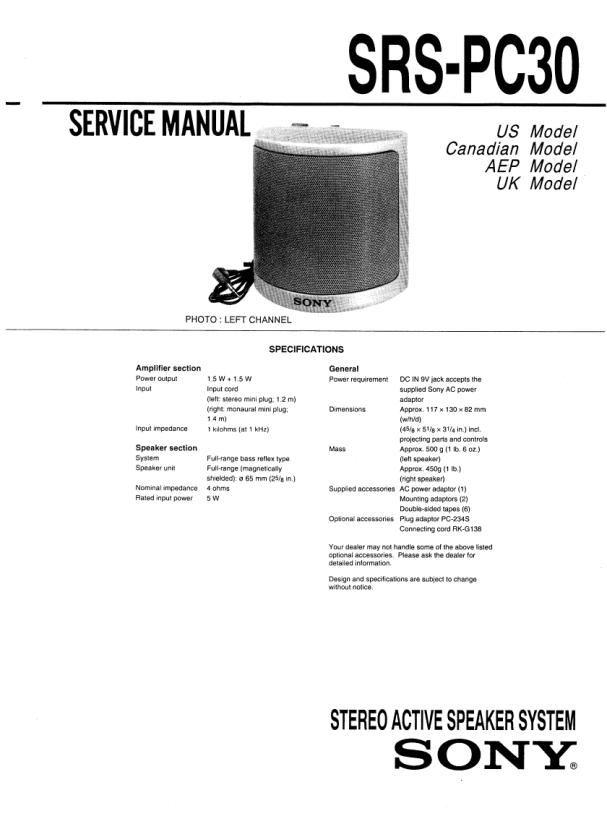 Opis SONY SRS-PC30 Instrukcja Serwisowa