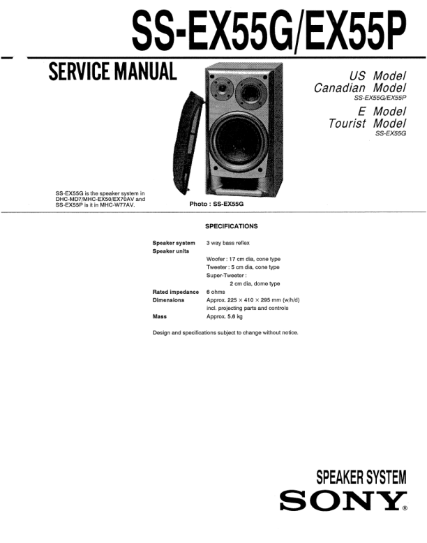 Opis SONY SS-EX55G Instrukcja Serwisowa