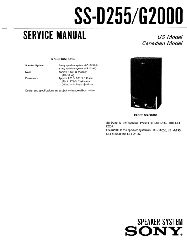 Opis SONY SS-G2000 Instrukcja Serwisowa