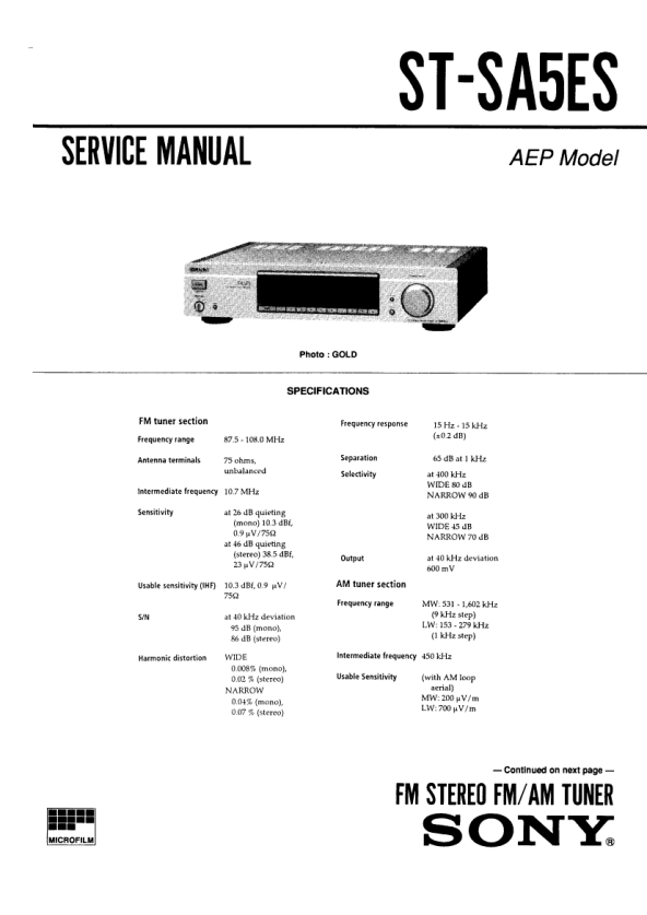 Strona główna >> SONY >> STSA5ES Instrukcja Serwisowa