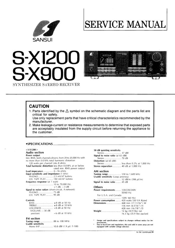 Strona główna >> SANSUI >> S-X1200 Instrukcja Serwisowa