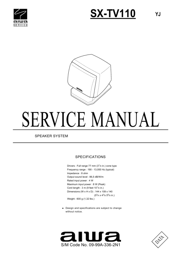 Opis AIWA SXTV110YJ Instrukcja Serwisowa