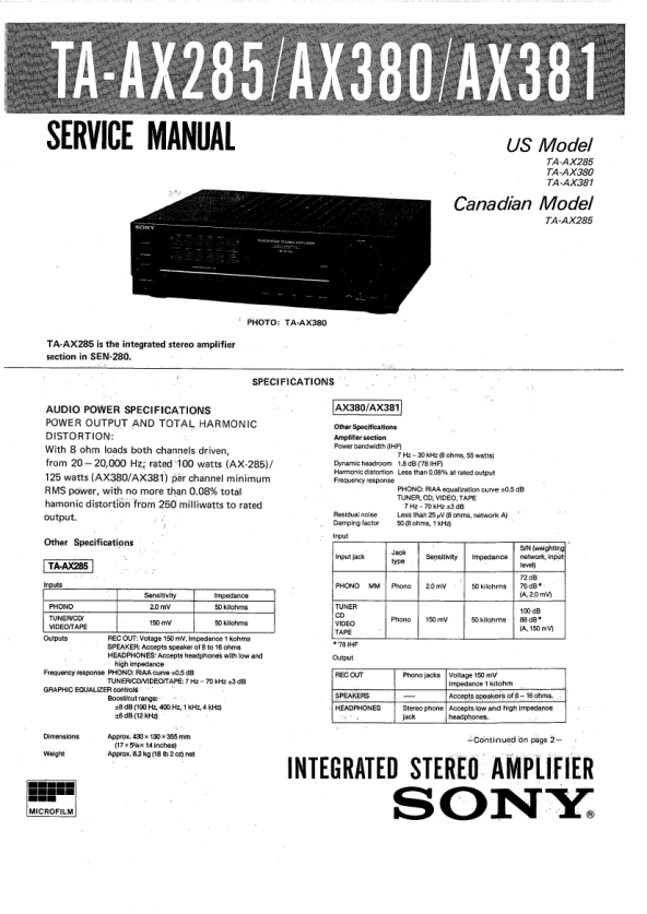 Opis SONY TA-AX381 Instrukcja Serwisowa