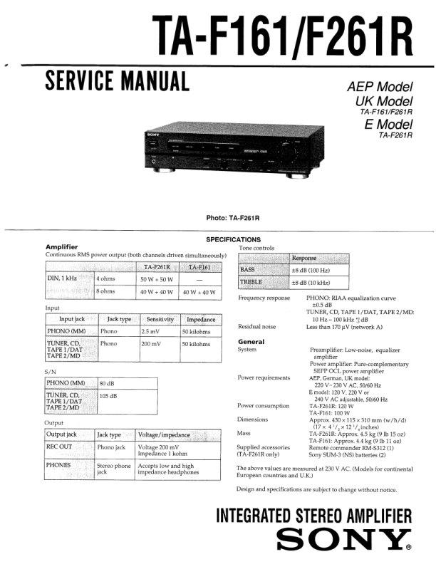 Opis SONY TAF261R Instrukcja Serwisowa