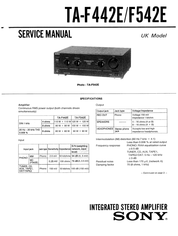 Opis SONY TA-F442E Instrukcja Serwisowa