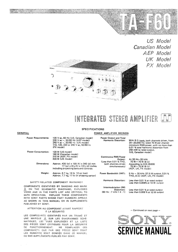 Opis SONY TA-F60 Instrukcja Serwisowa