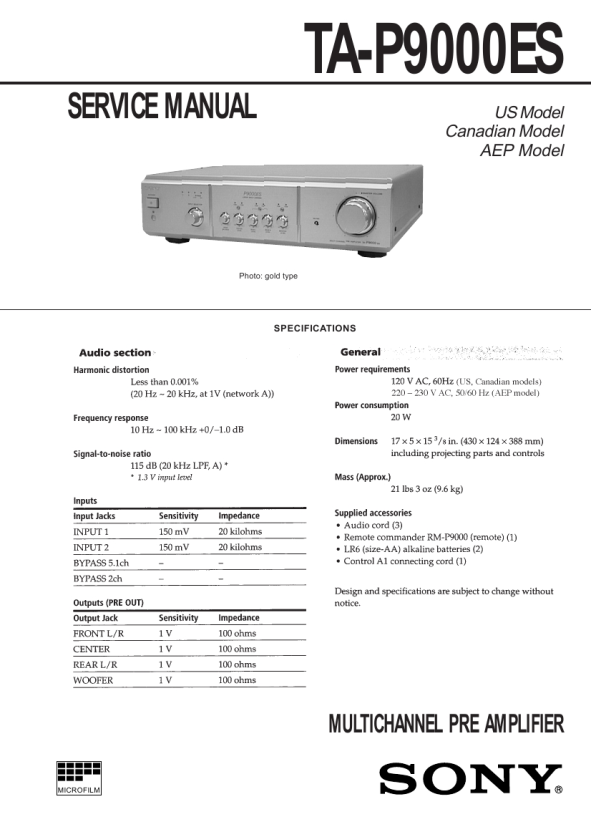 MODEL NO. TA-P9000ES MULTI CHANNEL PRE AMPLIFIER